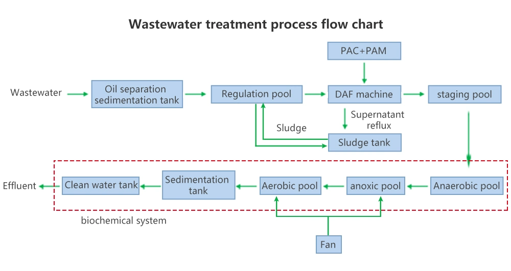Our industrial mining sewage treatment plant integrates pH adjustment, chemical precipitation, dissolved air flotation (DAF), and sludge dewatering to remove heavy metals such as iron, copper, lead, and zinc.